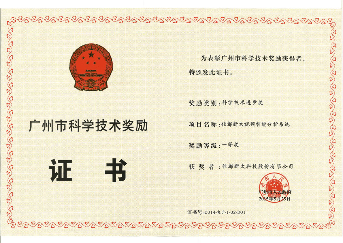 此外,由公司主导完成的“轨道交通自动检票闸机系统”、“摄像机故障自动检测和管理方法、装置和系统”分别荣获2013年度广州市科技进步二等奖和三等奖。